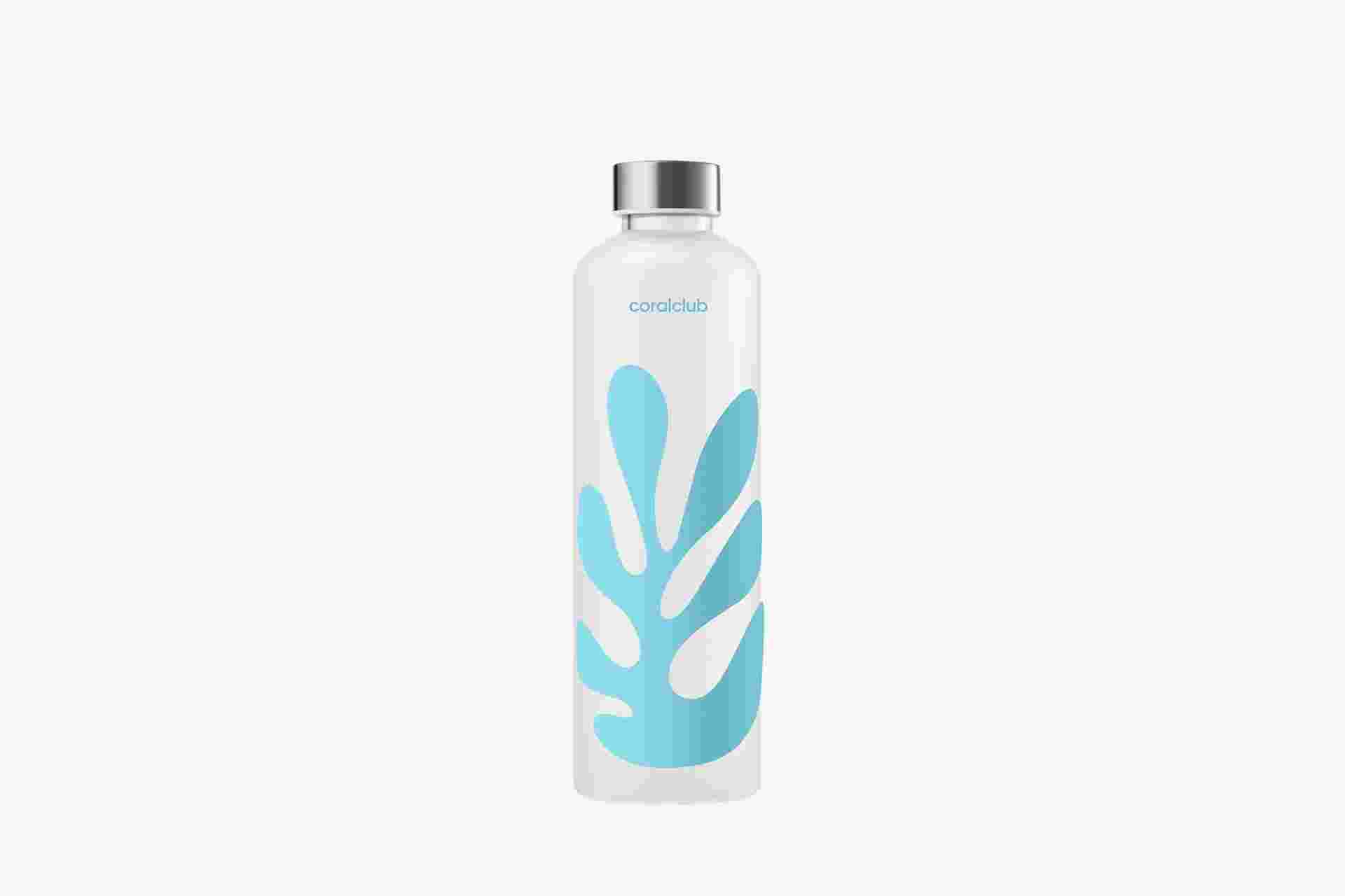 Borosilikaatklaasist veepudel, mis on loodud spetsiaalselt Coral Clubi 25. aastapäevaks.
